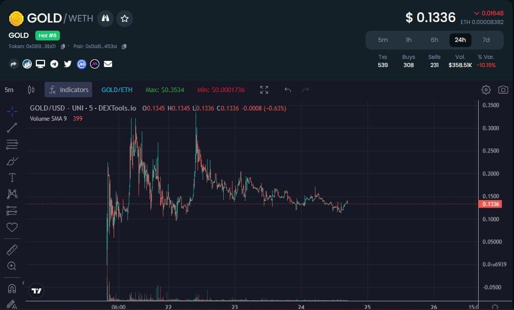 $GOLD Coin, An ERC-20 Memecoin, was launched on September 21st. It saw an incredible price growth in just 24 hours. Dominating the number 1 spot on ‘Dex Tools’ with impressive volume,