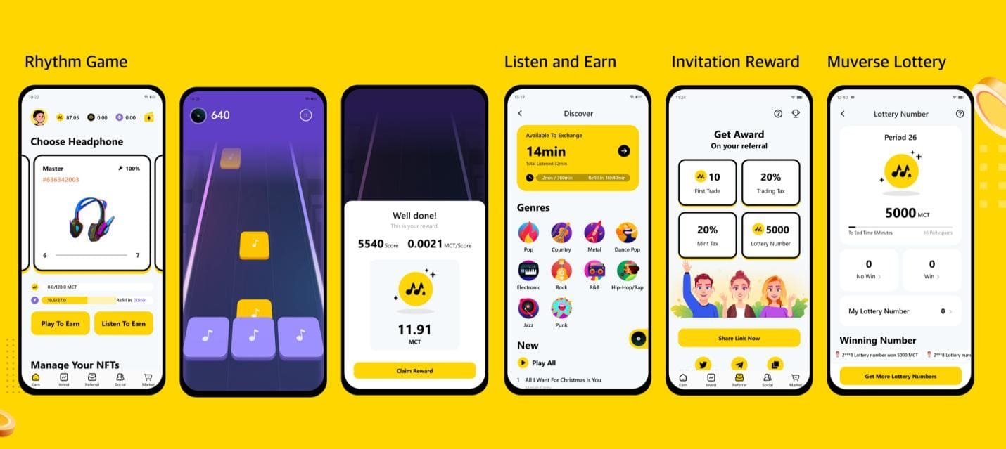 Muverse’s phase I product is a powerful rhythm game combined with an earning mode, allowing users to earn token revenue while playing the game. The combination of a rhythm game and earning mode will bring large numbers of game players and crypto investors to the Muverse app and help build a strong community that can drive the development of the Muverse ecosystem.