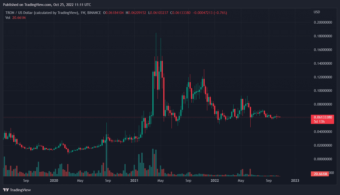 TRX, the native token, made a dramatic rally in the first half of 2021 and has since retraced significantly. This retracement makes TRX an excellent buy opportunity with its continued adoption, and therefore, demand for TRX set to send this token above $1 next year.