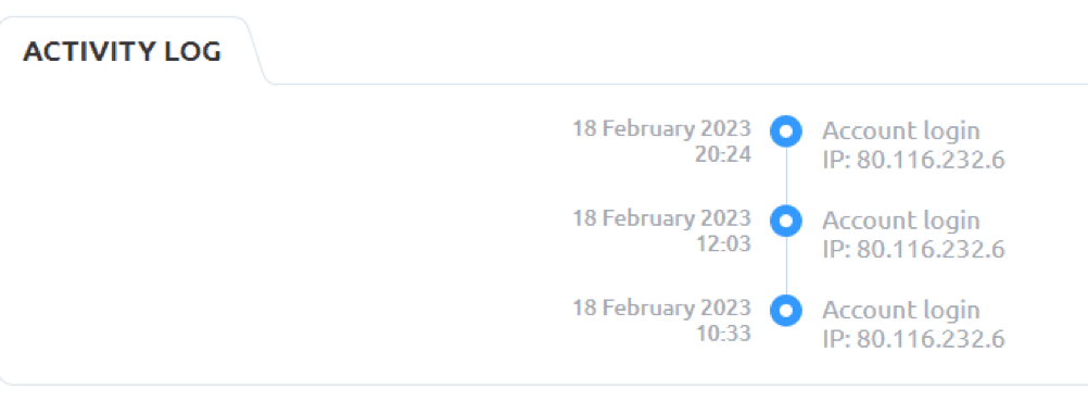 Last but not least, the activity log section. An important security measure that allows you to view all the accesses to your account: the date, time of access and the IP from which the access took place. In this way, in the event of an unauthorised access, you will immediately realise it.