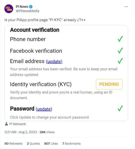 It is the second time the Network nudged users about KYC this week. On July 31, the Pi Network team also asked its users to file their KYC applications to allow the platform’s verifiers to review users’ application data. The team also limited the Pi news to asking users to “remind” their security circle and referral team members to “start their KYC and Mainnet Migration process.”