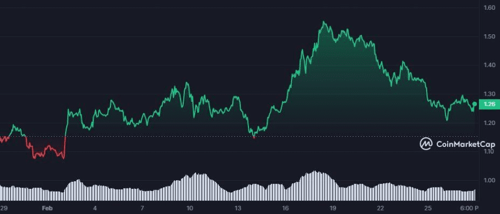 MATIC, the native currency of the Polygon chain, has seen a significant increase in its price at the end of 2021, peaking at $2.92. Since then, the coin has been in a slow but steady decline and is currently trading in a channel between $1.20 and $1.30.
