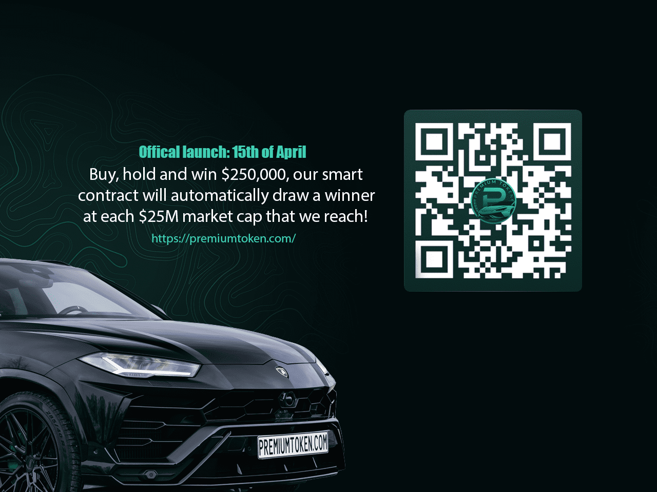 PremiumToken, proudly announces their official launch April 15th on Raydium.io, with a prize worth $250,000 up for grabs. Their smart contract will automatically draw a winner from the holders for each $25M market cap that PremiumToken reaches. The more you hold and the longer you hold it, the bigger chance of winning! Don’t miss out on this opportunity to secure your chance to win $250,000 worth of PremiumTokens!