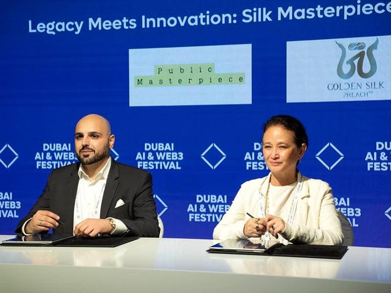 This historic collaboration was formalized at the Dubai AI & Web3 Festival 2024, where the partnership agreement between Public Masterpiece and Golden Silk Pheach was signed. Through this agreement, Public Masterpiece becomes the exclusive blockchain certifier of Golden Silk’s legendary textiles, transforming them into unique collectible Real World Assets (RWAs) valued at over $10 million. This partnership preserves Cambodia’s cultural legacy by bringing it into the digital age, ensuring its beauty is appreciated by global audiences for generations to come.
