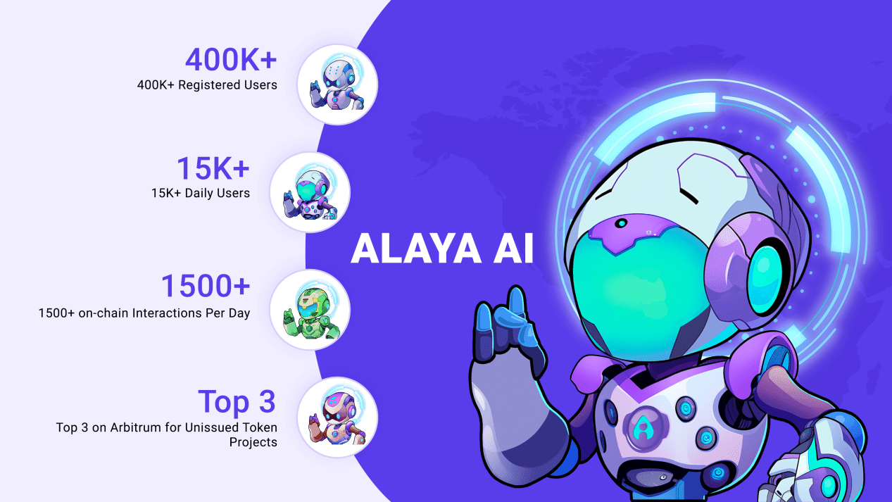 Alaya AI launched products 1.0 and 2.0 in June and August respectively in 2023, and deployed them on Arbitrum. It currently ranks among the top 15 in terms of activity on the chain, and ranks among the top 3 among projects that have not yet issued tokens.