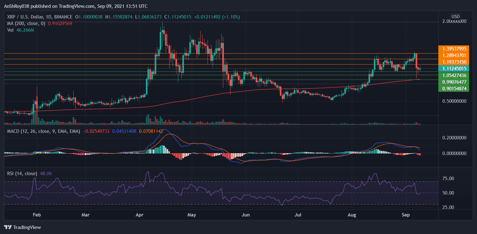 Meanwhile, as Bitcoin crashed after El Salvador’s glitched launch, XRP prices fell too. The Ripple token fell 33.4% from September 7’s high of $1.39 to the day’s low of $0.93. The decline continued on Wednesday as well.