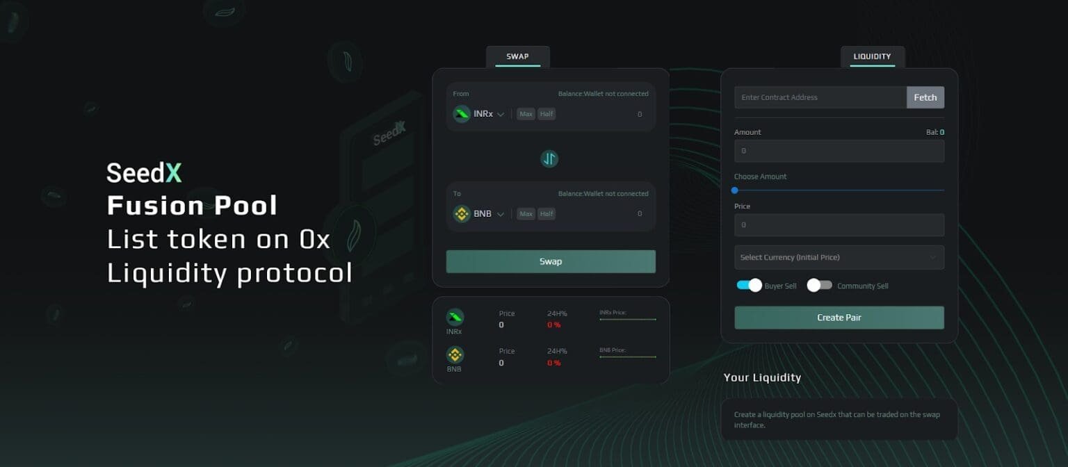 In addition to that, SeedX offers various features, such as token trading and swapping, staking, scratch rewards, and more. Additionally, SeedX enables projects to quickly establish token liquidity by creating a permissionless FusionSwap and pool on the platform.