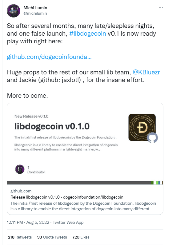 Additionally, LIBDOGECOIN will support multiple programming languages, including Python, Ruby, and Node.js. However, it is not clear whether the development would add to the Dogecoin blockchain’s value.