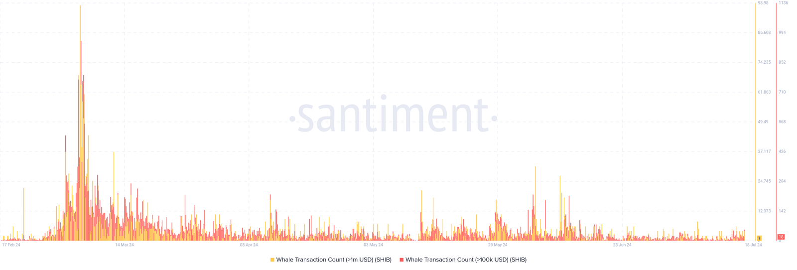 It’s not just the burn rate that’s causing concern. Other economic indicators for Shiba Inu are also showing signs of trouble. Large transactions are down by over 14%, suggesting that big investors (often called “whales”) are losing interest.