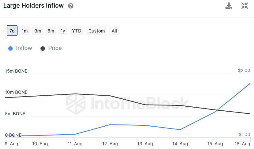 During this pivotal period, these addresses experienced an astonishing 210% increase in inflows, accumulating an impressive 6.64 million BONE tokens. This influx of tokens adds a noteworthy dimension to the evolving narrative.