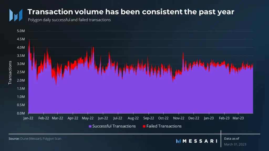 Polygon’s transaction volume remained consistent throughout the year, despite the crypto drawdown.