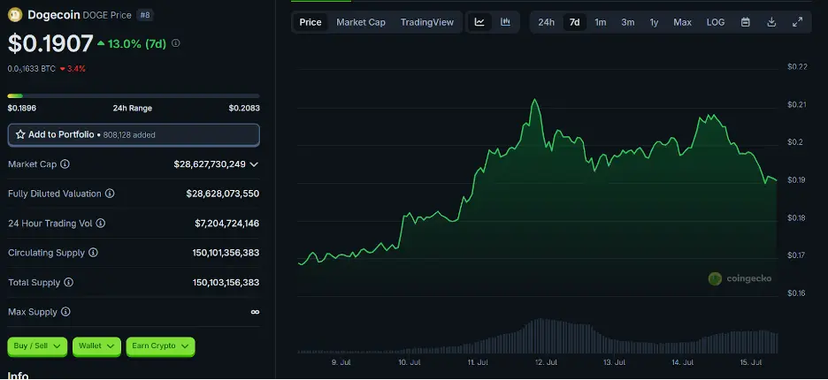Dogecoin Price Chart | Source: CoinGecko