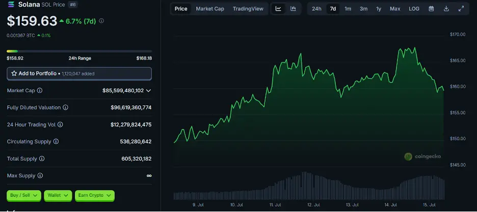 Solana has re-emerged as a dominant force in 2025. After successfully breaking the $160 resistance multiple times, SOL is now trading at $163.43 with a market cap of $87.65 billion, ranking as the sixth-largest crypto by market capitalization.