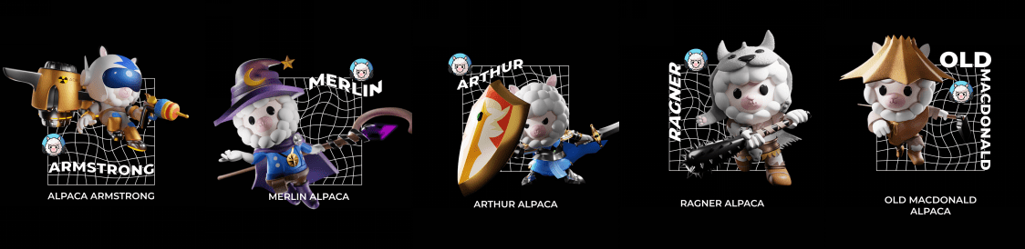 The Space Alpaca game features five characters, Old Macdonald Alpaca, Ragnar Alpaca, Arthur Alpaca, Merlin Alpaca and Alpaca Armstrong. The characters are divided into five rarities, namely COMMON, UNCOMMON, RARE, EPIC, and LEGENDARY. The higher the rarity of the character, the higher the rewards.
