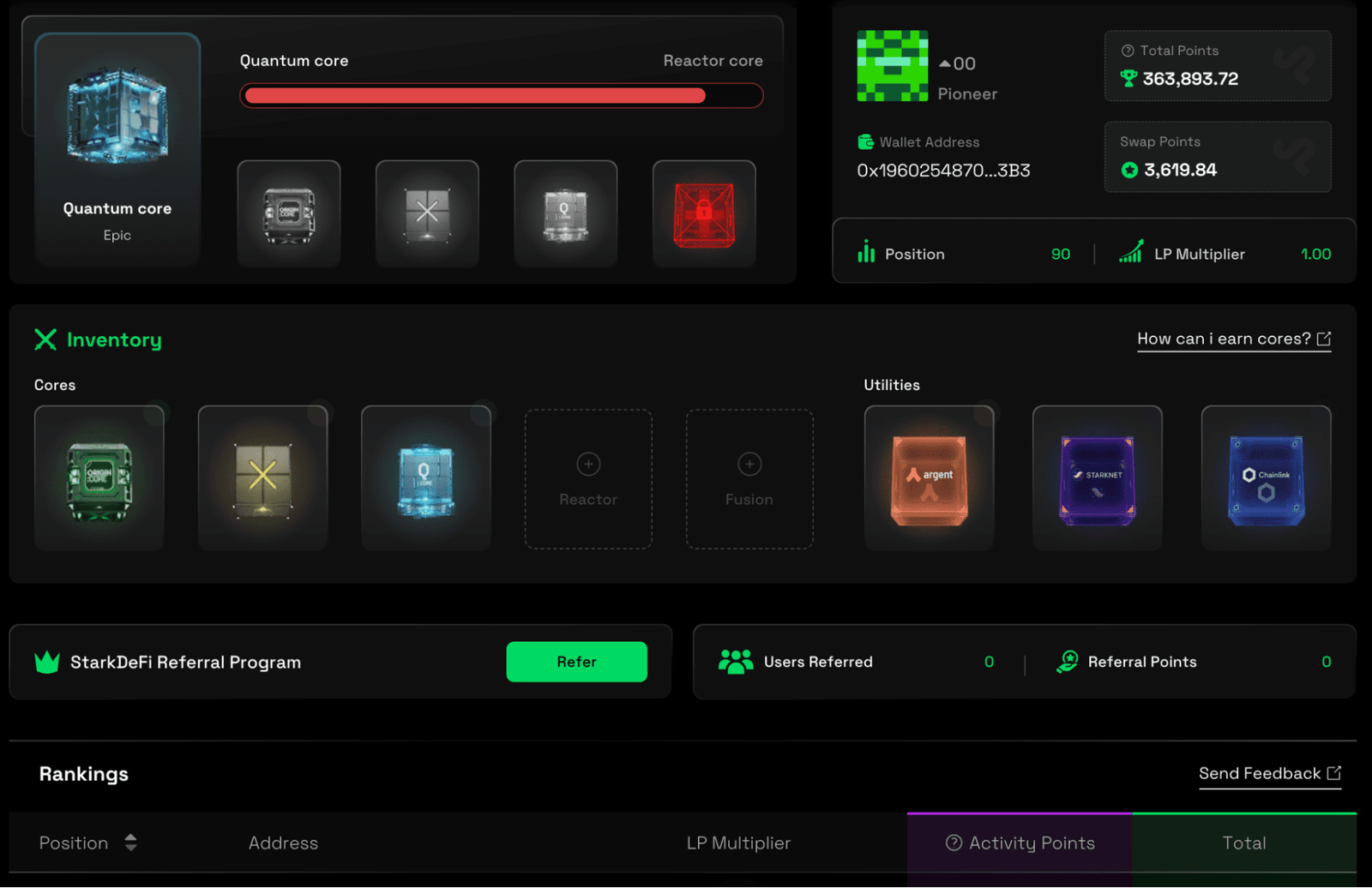 As a project poised to launch one of StarkNet’s initial tokens, users have been staying active, accumulating Regenesis Cores, exchangeable for $SDC, StarkDeFi’s native token.