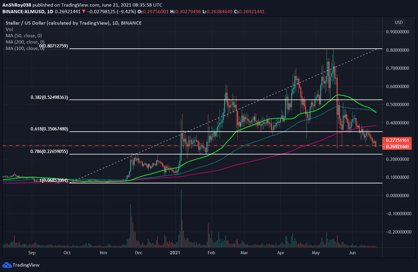 New Delhi (CoinChapter.com) — Stellar Lumens prices have been going through the token’s longest losing streak in 2021. The project’s native token XLM dropped by 9.2% on Monday as the entire crypto market declined in tandem.