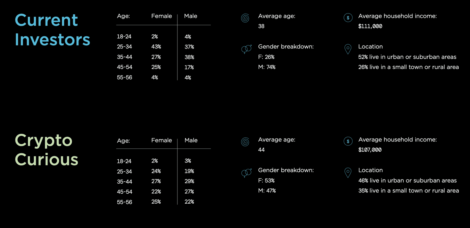 That number could nearly double this year as approximately 19.3 million Americans indicated they plan to purchase crypto. The average age of current cryptocurrency holders is 38, whereas the average age of crypto-curious respondents is 44.