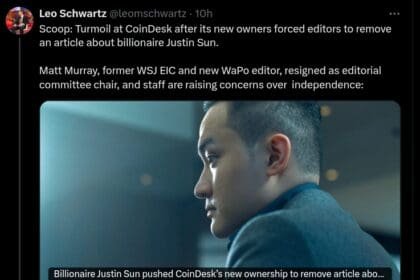 CoinDesk, a crypto news outlet, is facing controversy after billionaire Justin Sun…