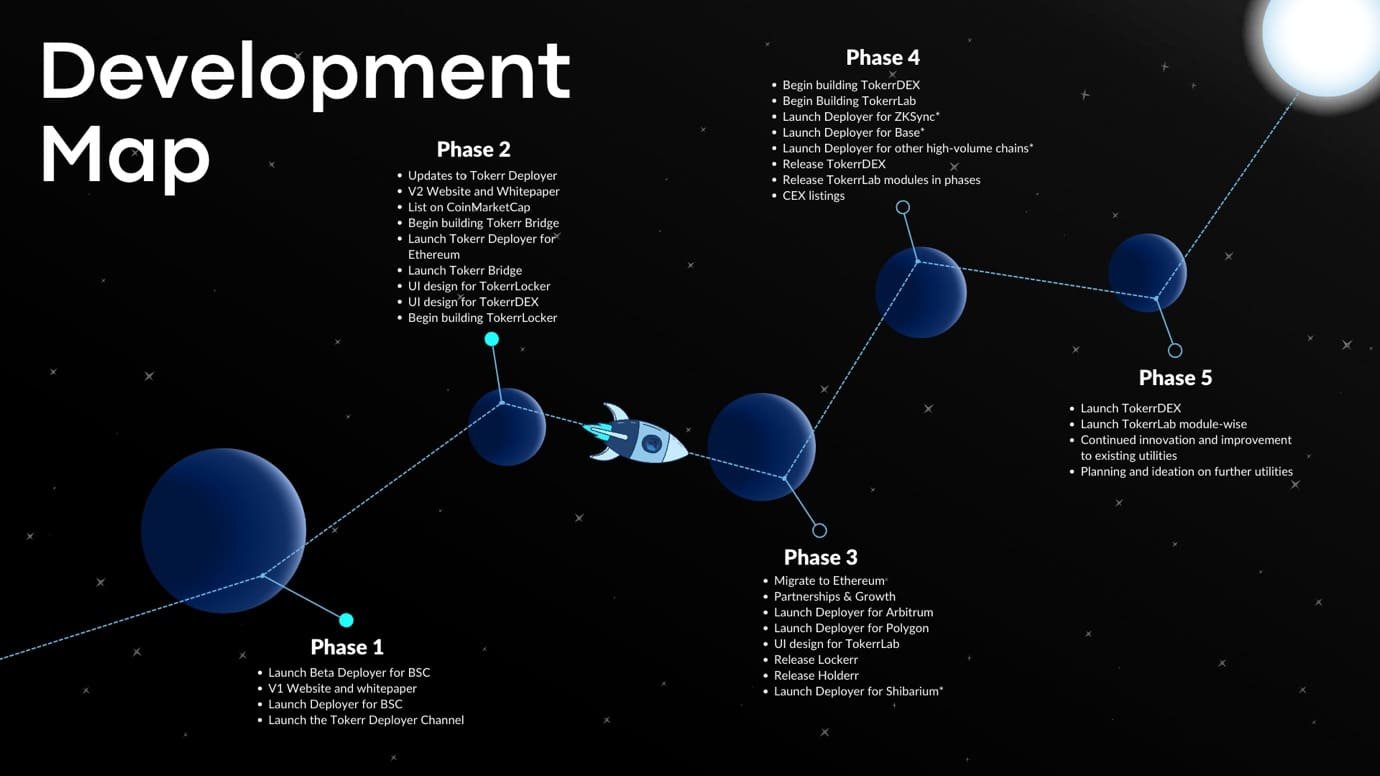 Tokerr has an elaborate roadmap, and the team plan to keep developing the project by continuing to innovate and develop real-world solutions for various existing and upcoming DeFi problems.