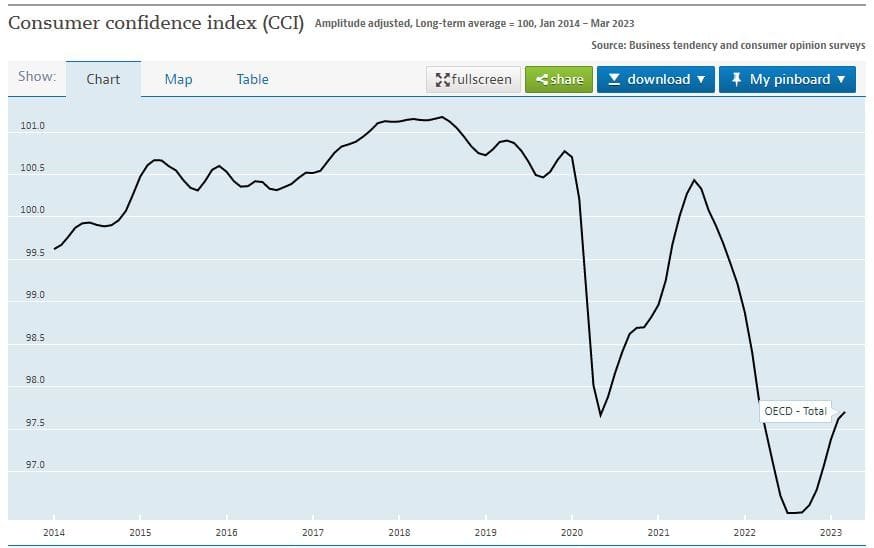 Furthermore, consumer confidence index (CCI) reached a level of 2020 lows despite the year-to-date uptick.