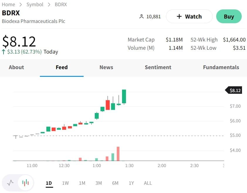 Biodexa Pharmaceuticals PLC (NASDAQ: BDRX), a clinical-stage biopharmaceutical entity, had no news today attributing to a 62.73% stock increase.