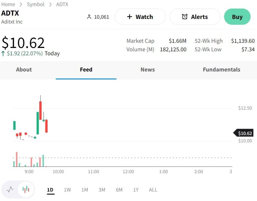 No releases were made by Aditxt Inc. (NASDAQ: ADTX), contributing to the 22.07% increase in stock today. Most recently, on August 23, 2023, Aditxt, Inc. announced that the company entered a Business Loan and Security Agreement with a lender.