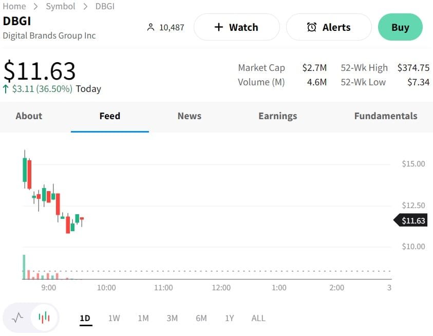 The stock of Digital Brands Group Inc. (NASDAQ: DBGI), a company specializing in women’s apparel, has experienced a noteworthy increase of 36.50% today.