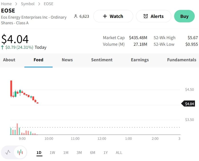 The complaint further reveals that Bridgelink Commodities, LLC, a significant Eos customer, was linked to a group whose assets were auctioned off following seizure by creditors. The situation casts doubts on Bridgelink’s purported commitment to purchasing Eos Energy’s products. Shares were up 24.31% on the news today.