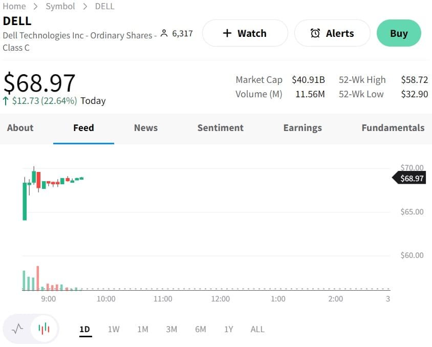 Dell Technologies Inc. (NYSE: DELL) shares experienced a significant rally, surging 10% in aftermarket trading on Thursday.