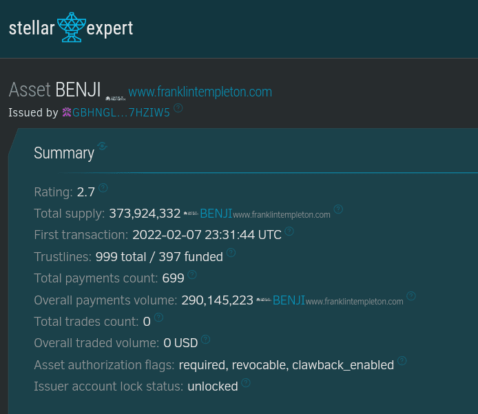 BENJI was launched in 2021 on the Stellar blockchain. However, more than 99% of its supply has been minted on the Polygon PoS blockchain. Stellar is a decade-old blockchain platform that has recently begun rolling out Ethereum-style smart contracts. It could facilitate more advanced use cases for BENJI and other tokenized assets.