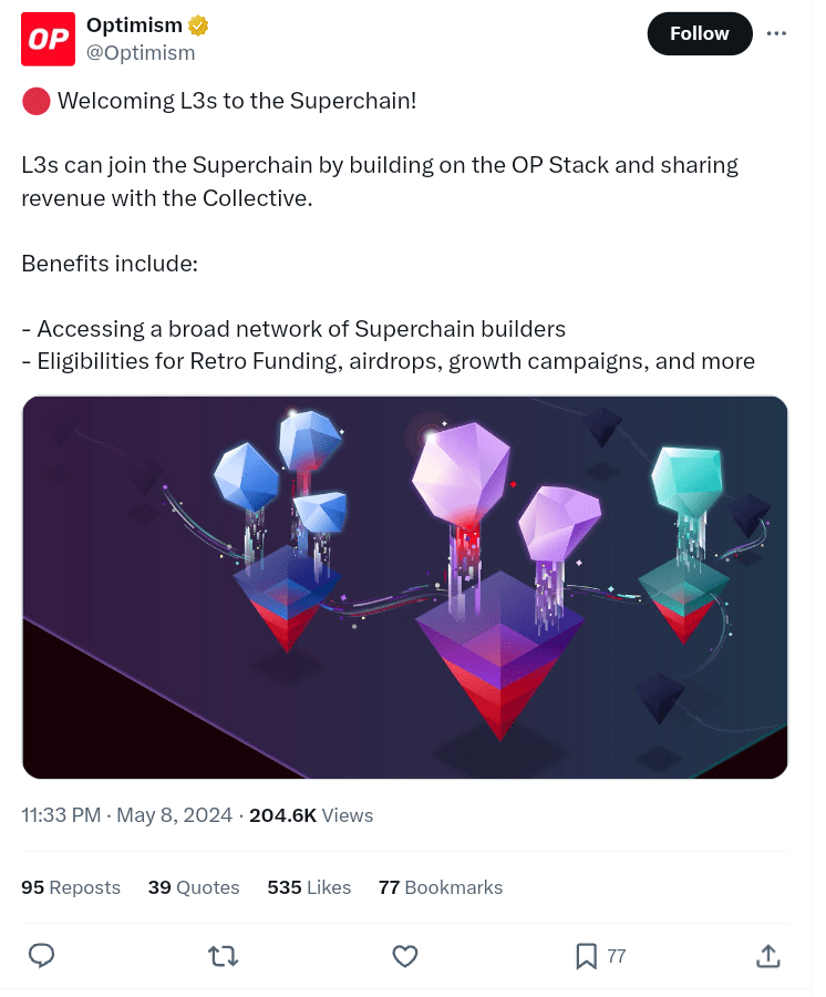 As layer-3 solutions host application-specific dApps, Optimism’s move promises enhanced scaling, performance, and customization for blockchain developers. With benefits like funding and airdrops, Optimism is positioning itself as a hub for innovative layer-3 protocols.