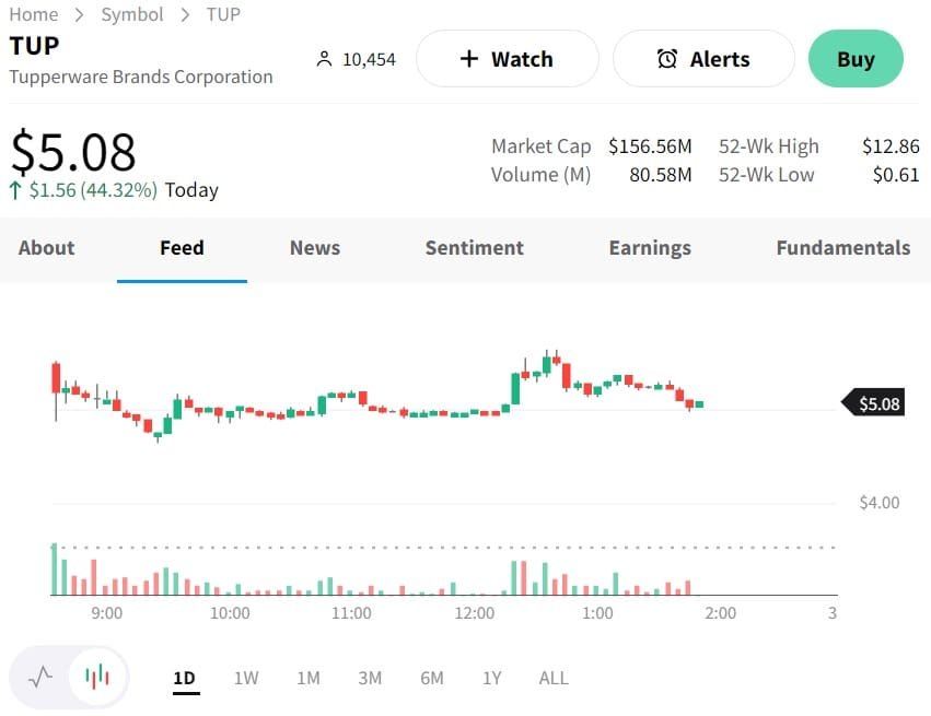 Tupperware Brands (NYSE: TUP) witnessed a dramatic increase today of 44% in its share value. The jump followed a 90% increase in after-hours trading on the previous day, triggered by the announcement of a debt restructuring deal. The well-known Florida-based kitchen storage container manufacturer, recognized for its vibrant plastic airtight containers, had previously expressed concerns in April about its ongoing viability due to declining sales. However, the recent debt restructuring agreement with lenders, set to reduce or reallocate approximately $150 million of cash interest and fees, has provided Tupperware immediate financial relief.