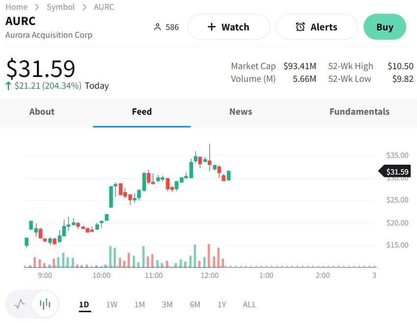 Aurora Acquisition Corp. (AURC) 31.59/21.21/204.34