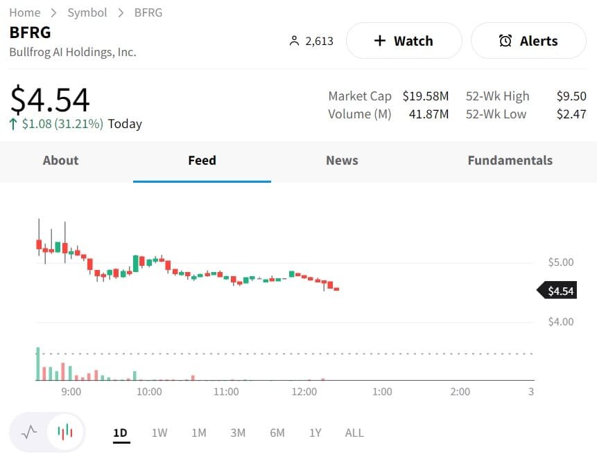 Bullfrog AI Holdings Inc. (BFRG) 4.54/1.08/31.21