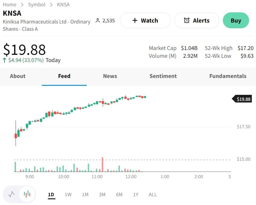 KNSA daily chart. Credit: Stocktwits