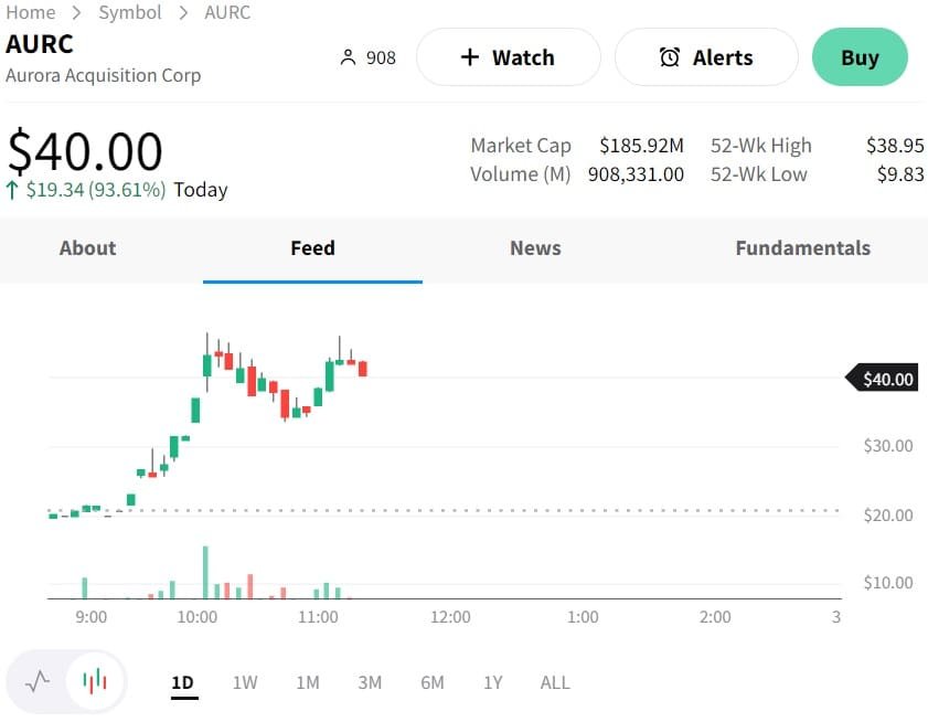 WISCONSIN (CoinChapter.com): Today’s top stock soared with a 93% gain, while earlier in the trading day peaked at over 150%. Aurora Acquisition Corp. (NASDAQ: AURC), announced the resumption of trading for its esteemed Class A Ordinary Shares.
