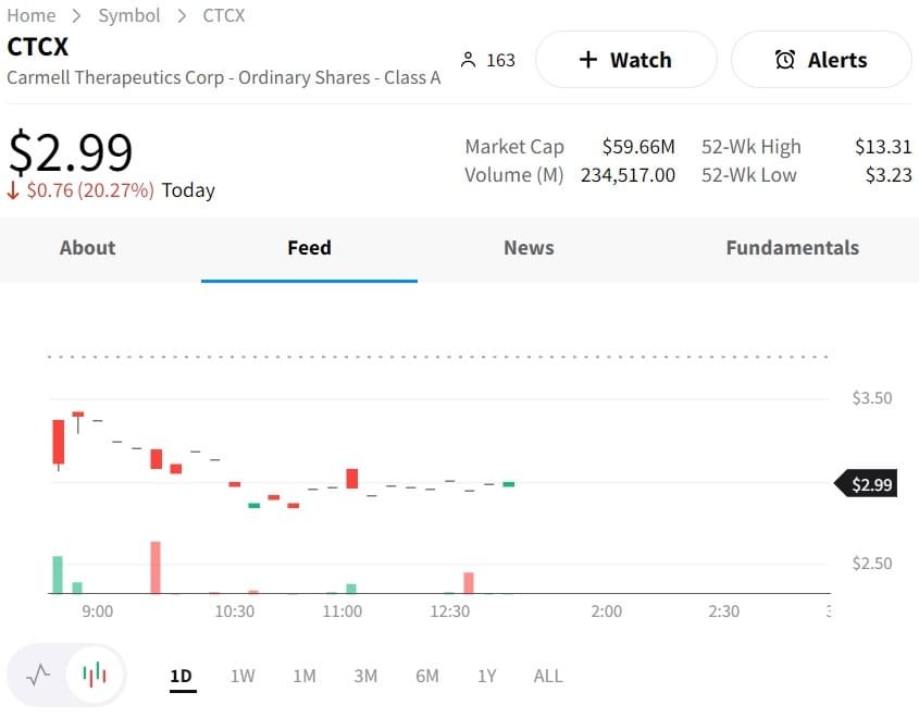 CTCX daily chart. Credit: Stocktwits