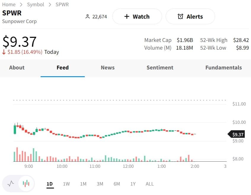 Shares of SunPower Corporation plummeted on Wednesday as the company dramatically cut its full-year guidance due to weakening demand in certain regions. SunPower slashed guidance on the back of a more acute drop in demand than anticipated in its latest quarter, particularly in the Southeast and Southwest regions, which the company attributes to higher interest rates. In response to the challenging market conditions, SunPower is moving to reduce labor costs as part of its strategic measures to manage the situation.
