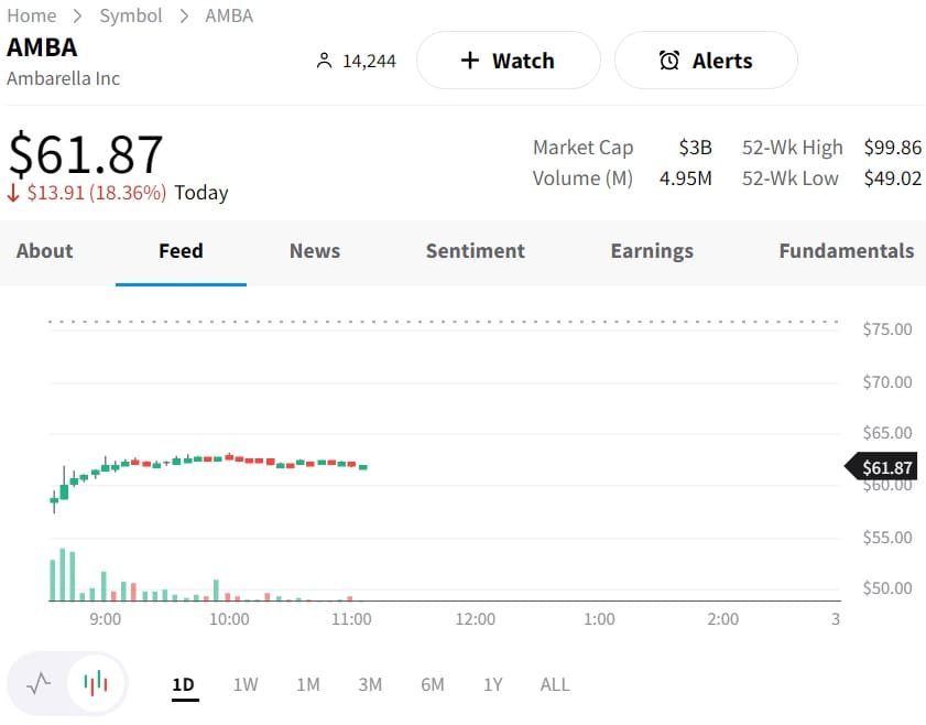 Ambarella Inc. (NASDAQ: AMBA), a manufacturer of computer-vision chips, exceeded Wall Street’s forecasts for its fiscal second quarter, but projected poorly for the current quarter, causing a significant decline in AMBA stock today.