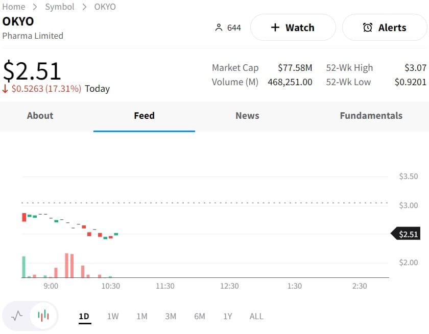 OKYO Pharma Ltd. (NASDAQ: OKYO), a bio-pharmaceutical firm specializing in ophthalmology, announced a significant milestone in its ongoing Phase 2 clinical trial for the drug OK-101. But the news was not enough to hold back sellers of the stock today.