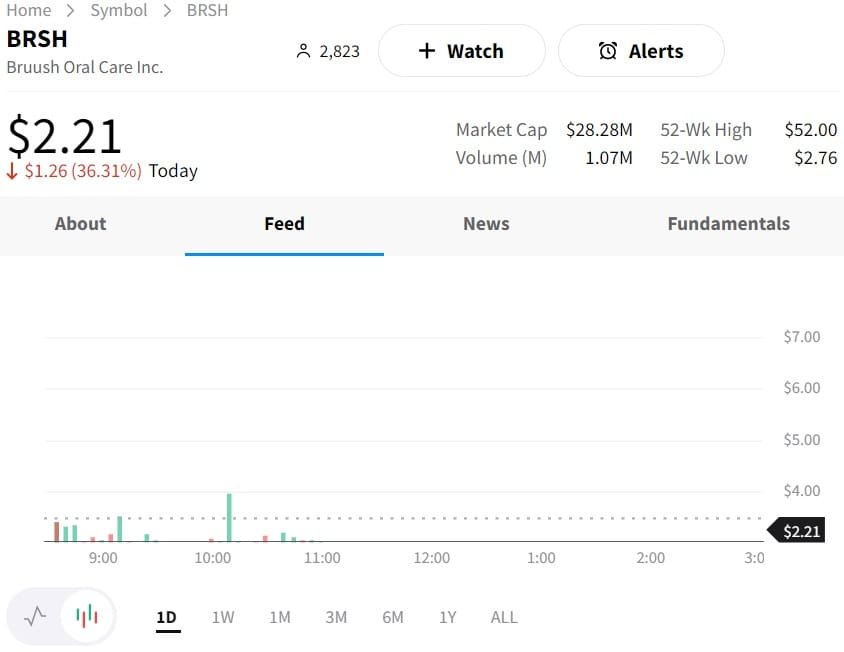 Brüush Oral Care Inc. (NASDAQ: BRSH), a significant player in the direct-to-consumer oral care sector, had no news today, contributing to the stock’s 36.31% sell-off. The most recent announcement was a 1-for-25 reverse stock split as of July 31, 2023.