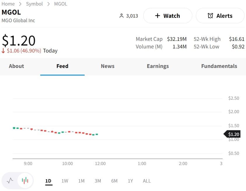 MGO Global Inc. (NASDAQ:MGOL) Stock Price