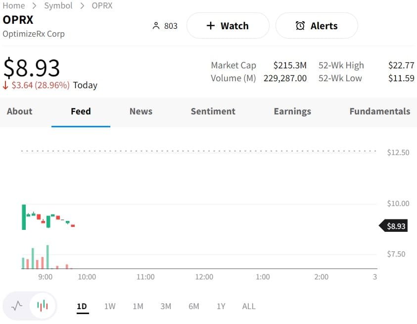 OptimizeRx Corp. (NASDAQ:OPRX) Stock Price