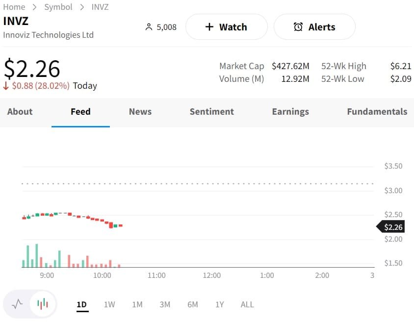 This news disappointed investors as Innoviz Technologies’ stock fell today due to the significant discount from the previous $3.14 closing price.