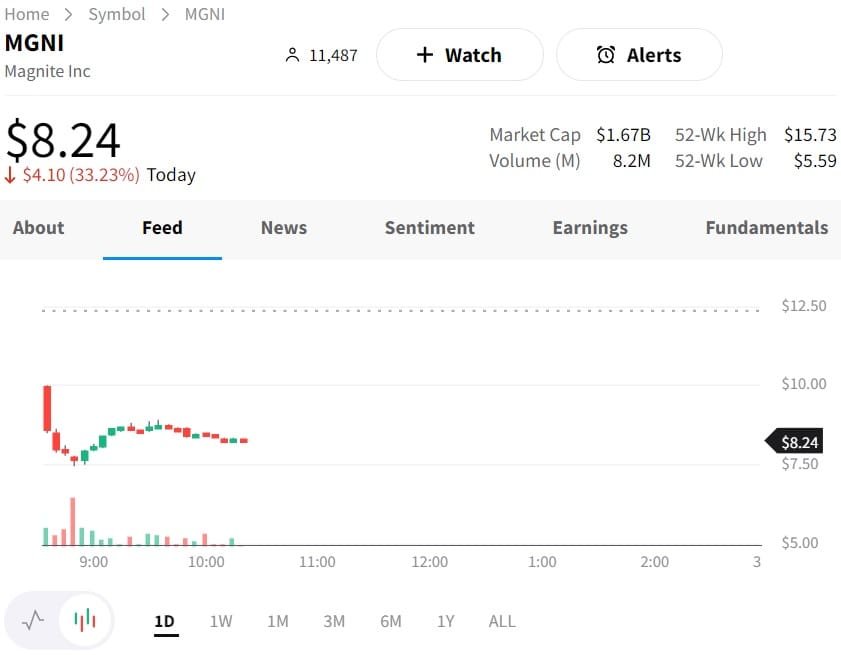 Magnite Inc. (NASDAQ: MGNI), a leading ad tech company, witnessed a significant decline in its shares by 33.23% on Thursday following the announcement of its second-quarter results. Despite beating estimates with its EPS at $0.09 and revenue hitting $152.5 million, marking a 23.7% year-over-year increase, the market response was negative.