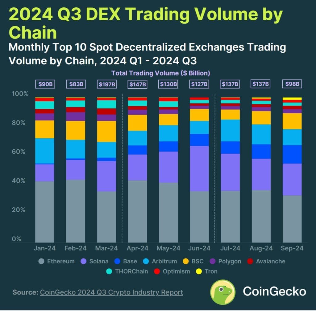 2024 Q3 DEX Trading Volume by Chain. Credit: CoinGecko