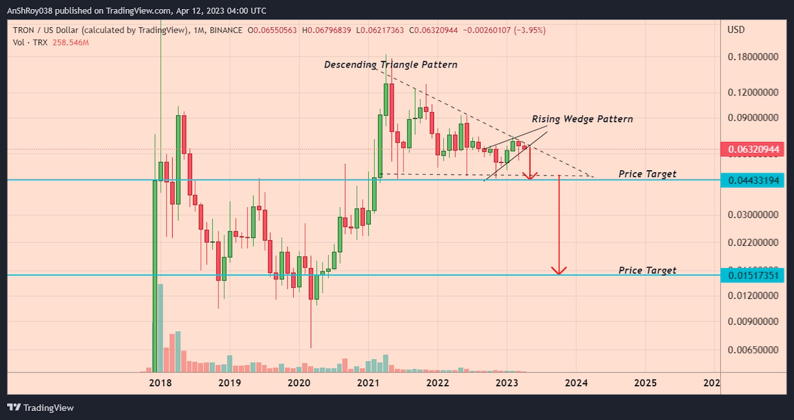 TRX Price Form Two Bearish Patterns