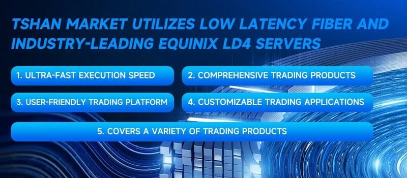 Ultra-fast Execution Speed: With an average execution speed of less than 30 milliseconds, Tshan Markets leverages low-latency optical fibers and industry-leading Equinix LD4 servers, ensuring timely and accurate information transmission.