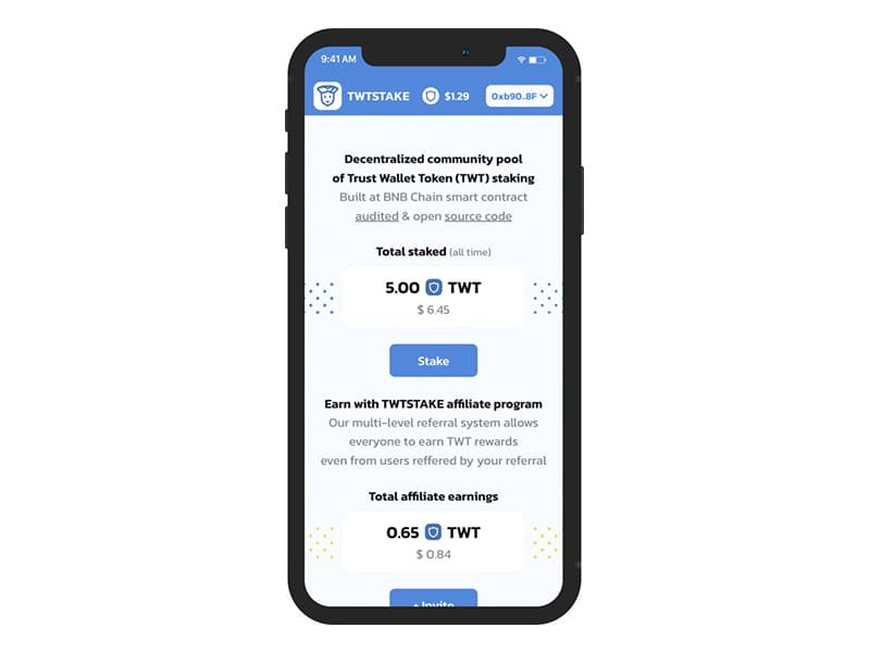 TWTStake is a decentralized platform developed on BNB Chain, which enables users to stake their TWT tokens securely and conveniently. The platform provides users with an easy-to-use interface that allows both beginner and experienced users to easily stake their tokens.