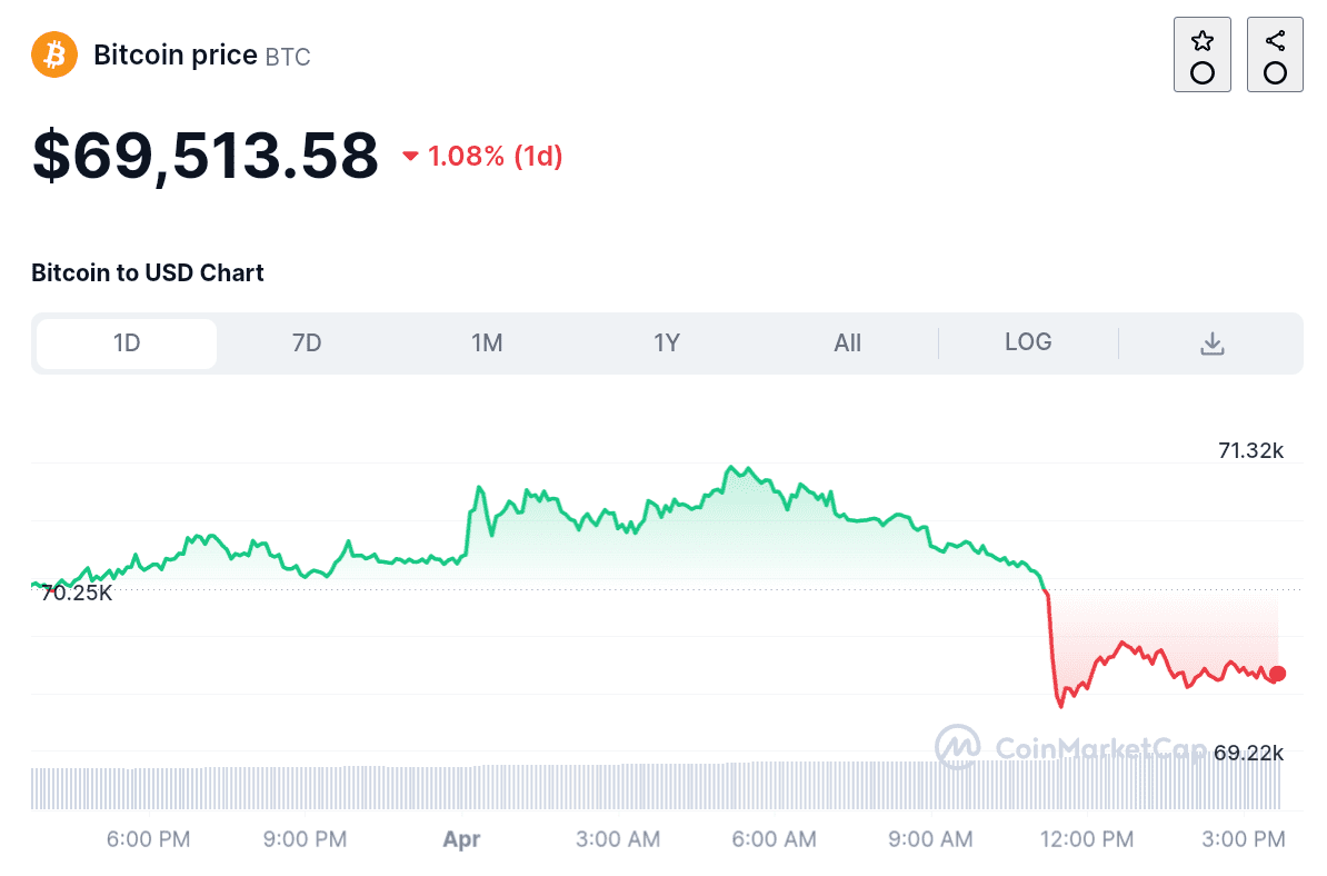 At the time of this writing, the Bitcoin price is $69,435.81, with a trading volume of $25,433,465,800. However, it has experienced a slight decline of 1.16% during this same period.